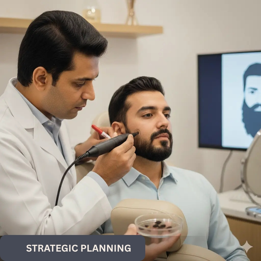 Dr. Anirudh emphasizes a thorough consultation to review your medical history, assess your donor hair, and discuss your aesthetic goals to determine if a beard transplant is the right solution for you.