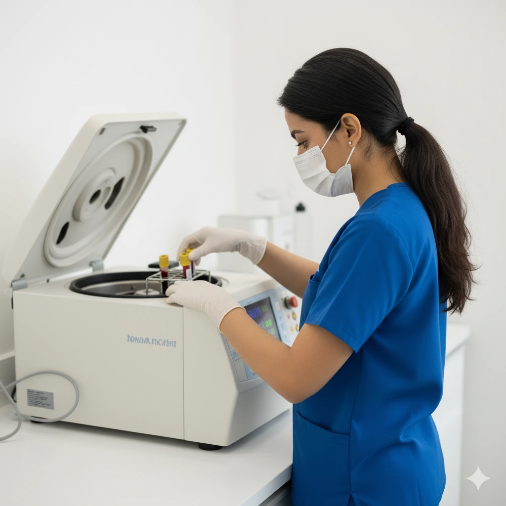 The activated blood is then processed in a state-of-the-art centrifuge. This separates and isolates the highly concentrated GFC from other blood components.