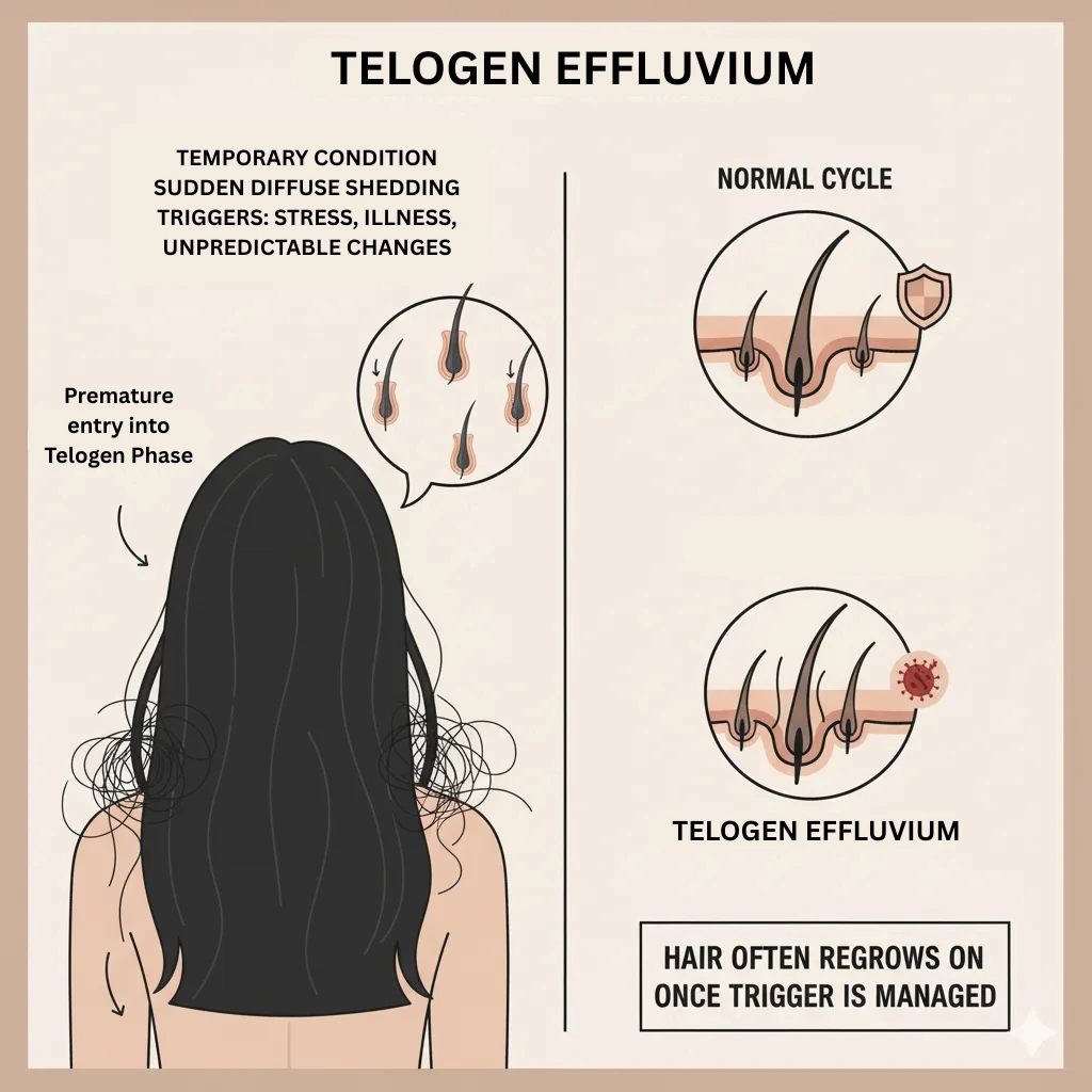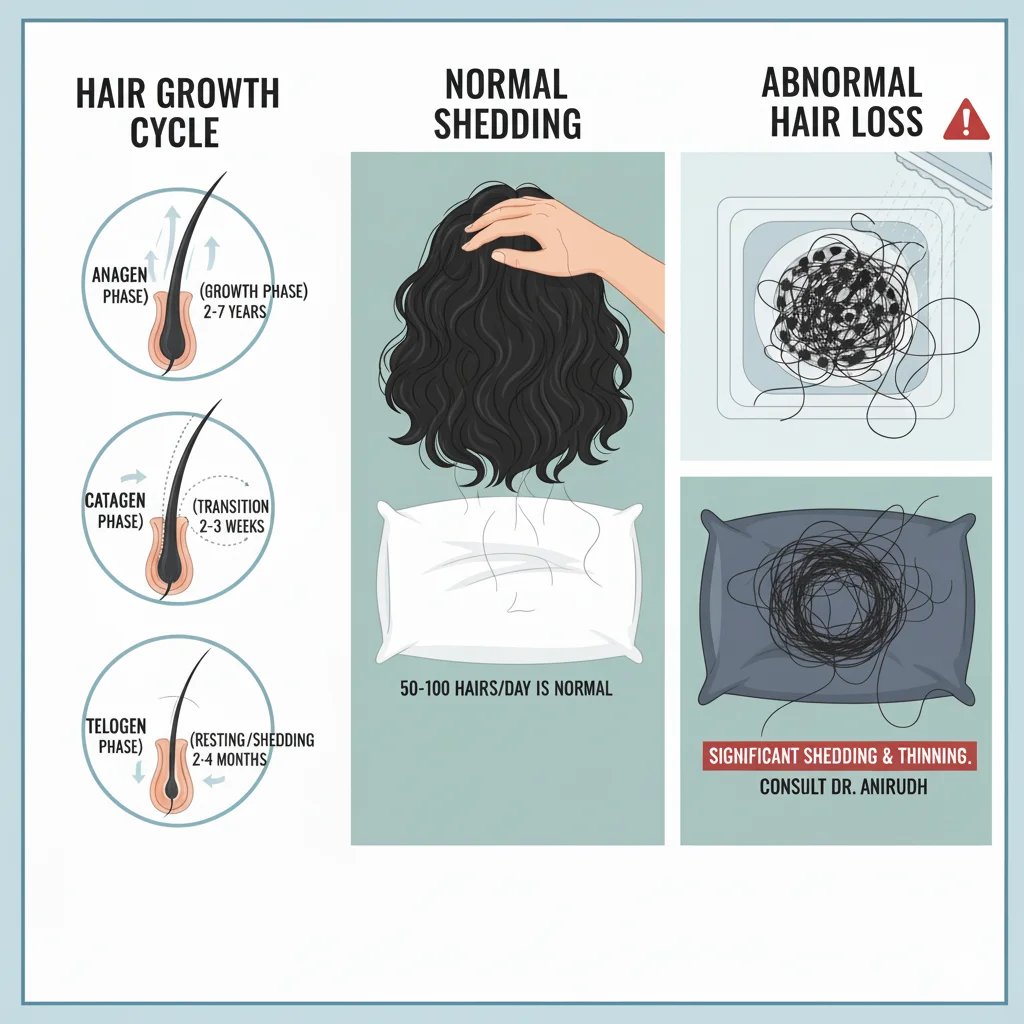 Normal Hair Loss (Telogen Effluvium) is a natural part of this cycle. It is completely normal to shed approximately 50 to 100 hairs per day.