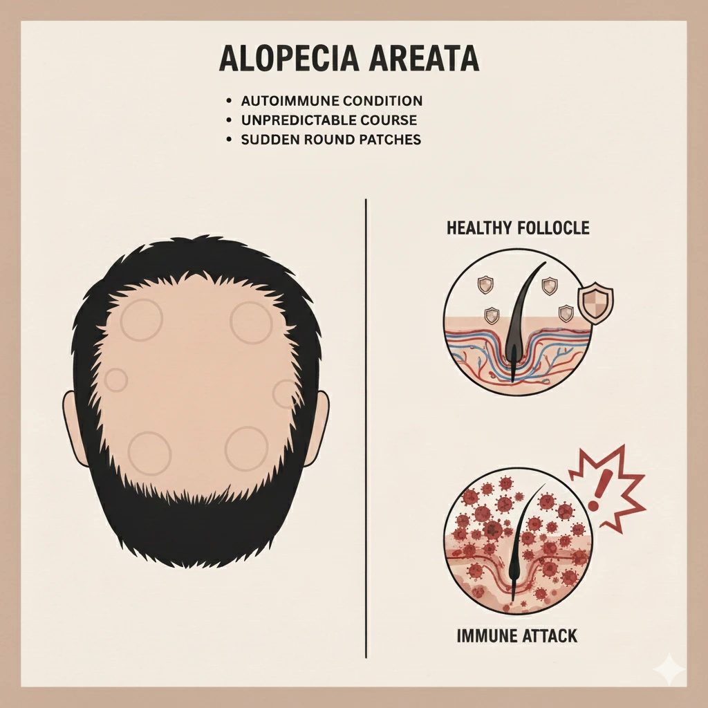 - Medical Conditions: Autoimmune diseases (e.g., Alopecia Areata), scalp infections (e.g., ringworm), or other systemic illnesses can directly impact hair health.