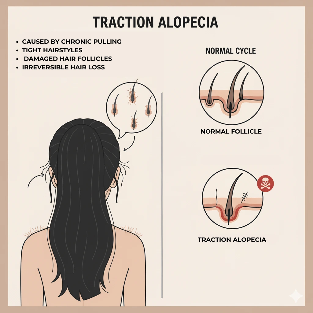 - Lifestyle Factors & Hair Practices: Smoking, excessive alcohol, a sedentary lifestyle, and particularly tight hairstyles (Traction Alopecia) or harsh chemical treatments can damage hair follicles.