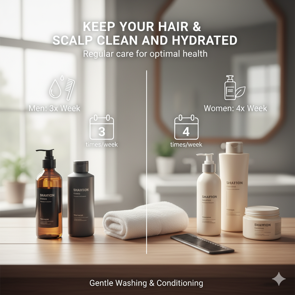 - Keep Your Hair & Scalp Clean and Hydrated: Regular, gentle washing and conditioning help maintain scalp health, removing excess oils and dirt without stripping natural moisture. Oil and shampoo 3 times a week for men and 4 times for women is a good general guideline.
