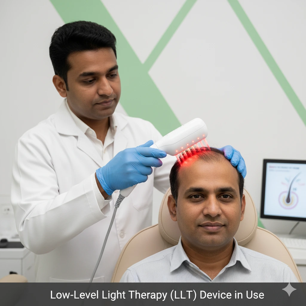 Absolutely. LLLT is an excellent complementary therapy. Dr. Anirudh often recommends combining it with treatments like GFC, PRP, Mesotherapy, or even post-hair transplant to enhance and accelerate overall hair restoration results.